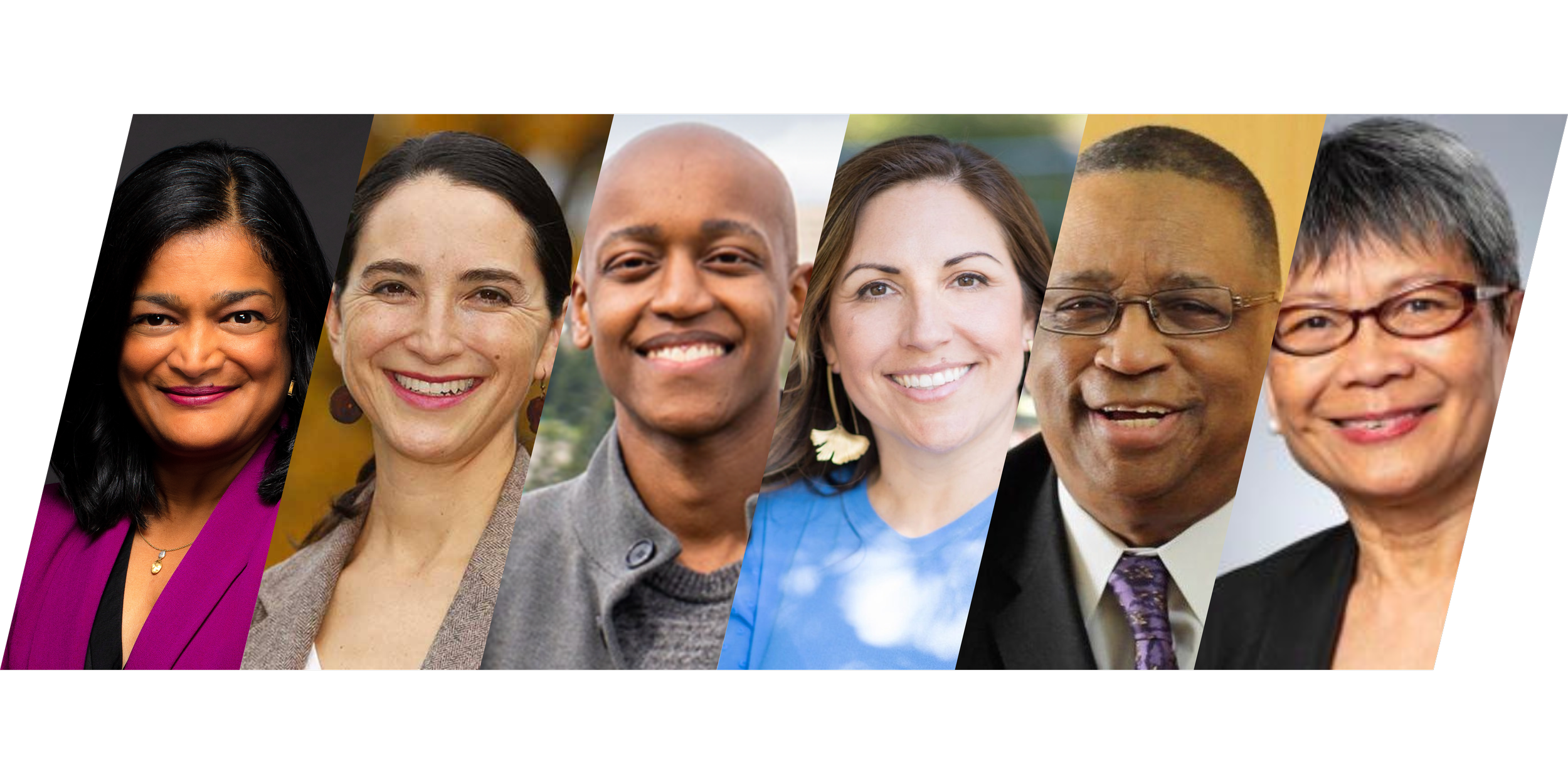 (From left to right) Congressional Representative Pramila Jayapal, State Senator Rebecca Saldaña, King County Councilmembers Girmay Zahilay and Teresa Mosqueda, former Councilmember Larry Gossett, and former State Representative Velma Veloria